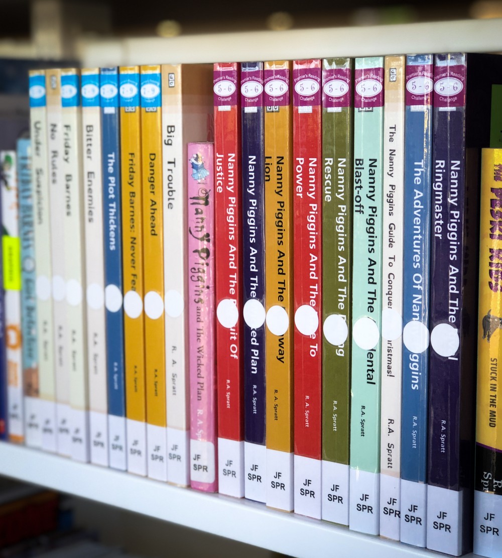 Alternatively try your luck on the library shelves. Browse the collection – the books with the White Dot on the spine will be in Dyslexic Print.